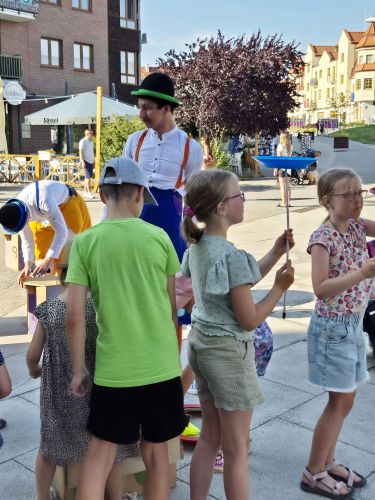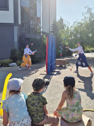 Po przedstawieniu odbyły się dla chętnych godzinne warsztaty z udziałem artystów,  podczas których uczestnicy poznali tajniki sztuki żonglowania, mającej wpływ na rozwój motoryki ciała i koncentracji.